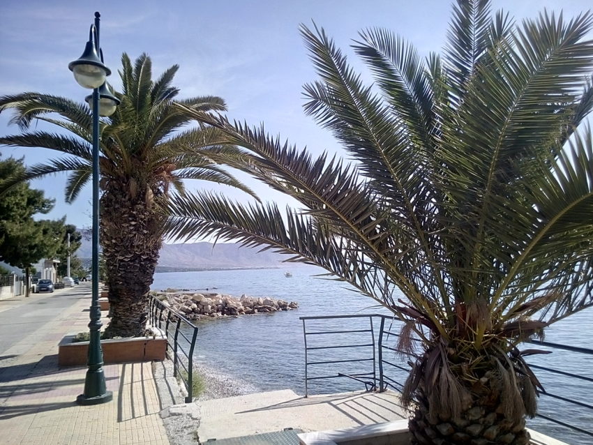 Kolejna atrakcja to promenada. Nie zatłoczona, z plaża piaszczystą, albo molami z których można skakać do wody. Na promenadzie znajdziemy malownicze knajpki w cieniu palm, z których roztacza się niezwykły widok na Peloponez, Salaminę i Eginę. Cała Zatoka Sarońska jak na dłoni. Do tego można siedziec dokładnie nad samym morzem, jak. No własnie, jak w Kokkino Nero.